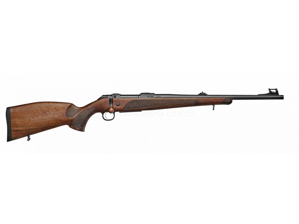 Nejnovější podoba lovecké kulovnice CZ s dřevěnou pažbou tradičního evropského designu.